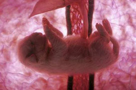 Mit 25 Tagen sind die Embryonen ca. walnussgroß. Die Ohren werden am 26. Tag gebildet, Augenhülle und Tasthaare bilden sich am 27. Tag. Beine, Pfoten und Zehen (zu diesem Zeitpunkt noch schwimmhäutig) sind deutlich erkennbar.